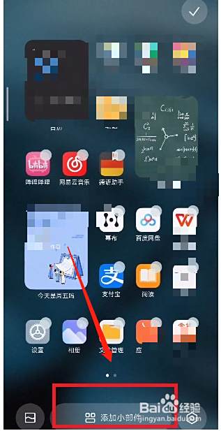在手机桌面双指向中间聚拢调出桌面编辑工具,点击下方的添加小部件
