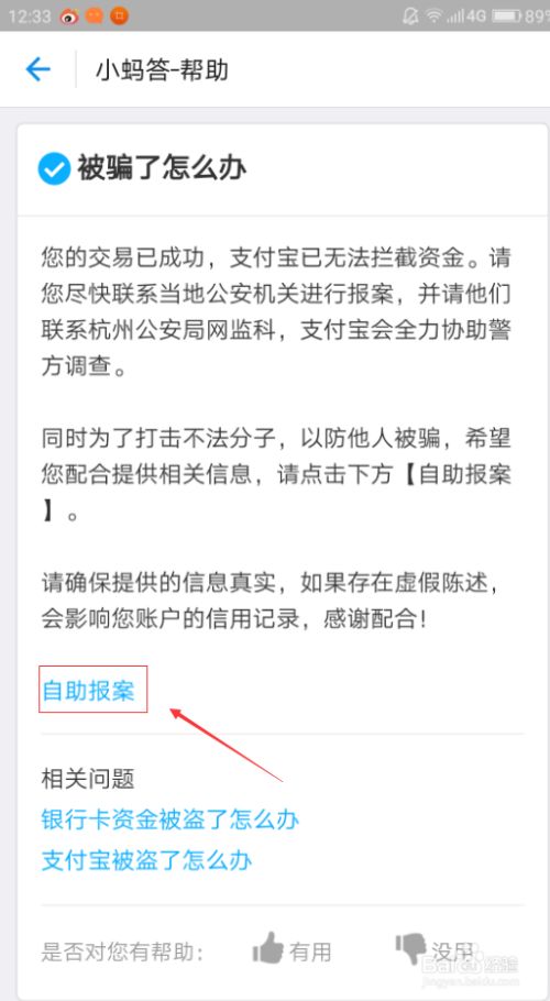 5、点击“被骗了怎么办”以后,我们点击里面的“自助报案”,然后就进入了步骤一中第7、8、9、10小步的流程页面。