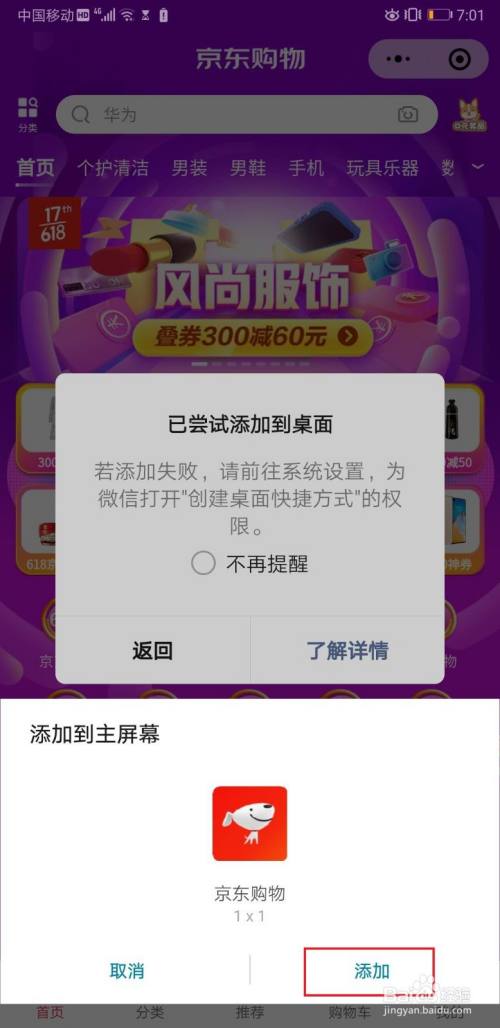 点击“添加”,即可把相应的微信小程序添加到桌面。