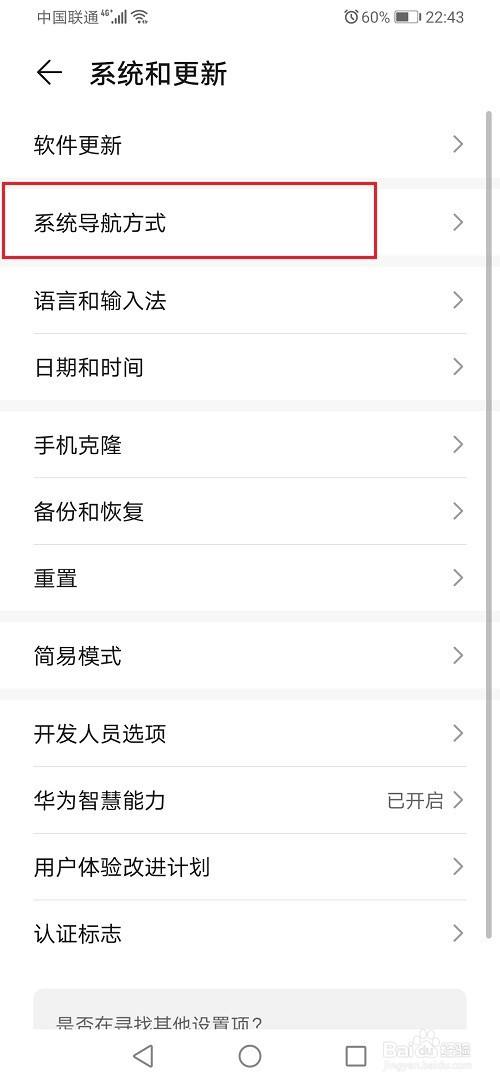 第三步在系统和更新中,点击系统导航方式