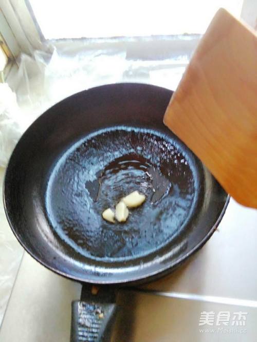 锅里倒油,放大蒜瓣炒香