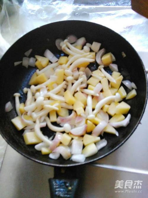 放土豆,洋葱,白玉菇进去炒香