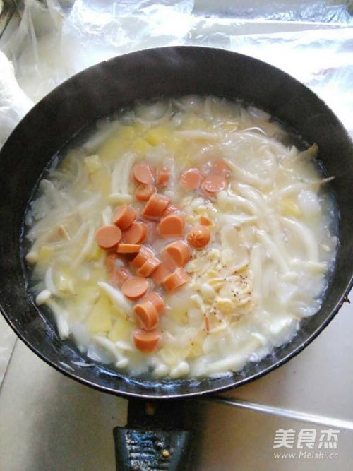 加水煮,水开了加切好的火腿肠片