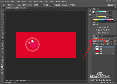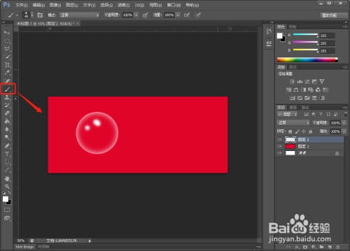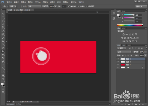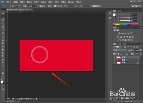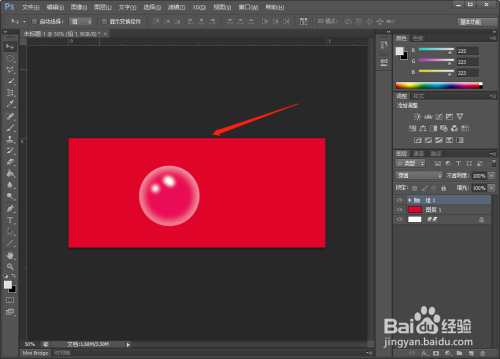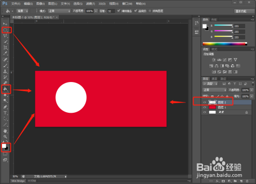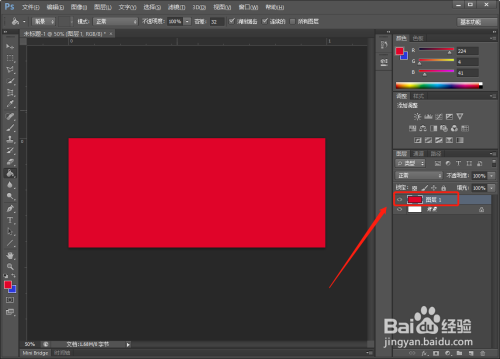【新建】一个图层,用【油漆桶】工具,给图层填充红色。