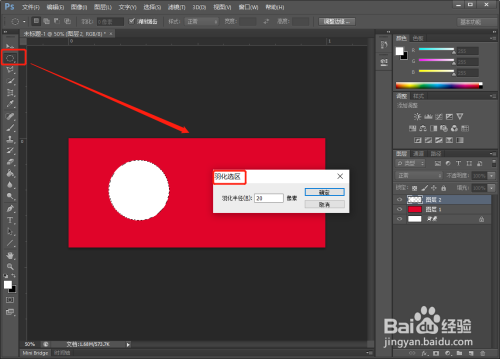 在选择工具下,点击右键,选择【羽化】,羽化20 。