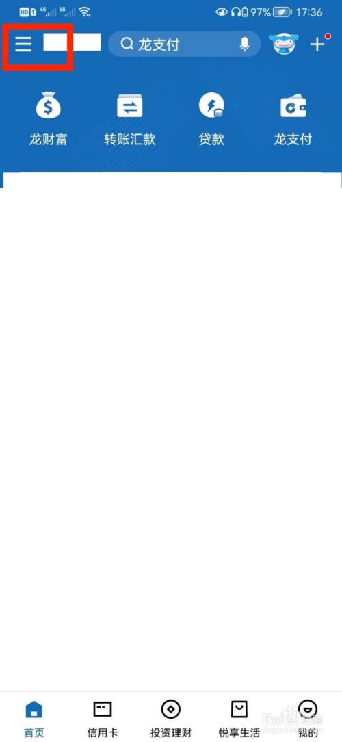 在中国建设银行应用,打开左上角【更多】选项。