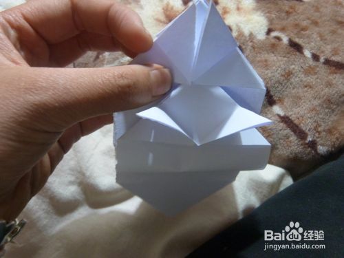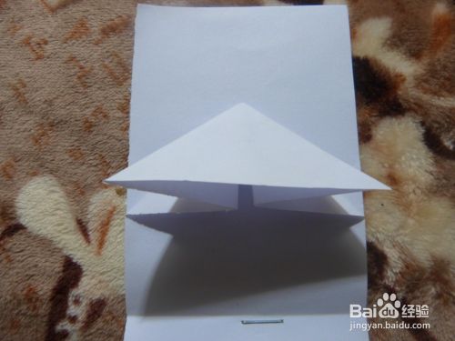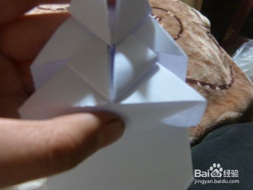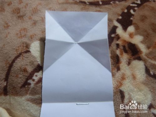 把正方形的中线向里面推,压成一个三角形,再把三角形最长的边折了与三角形的中线重合,把所有纸全部折成这样