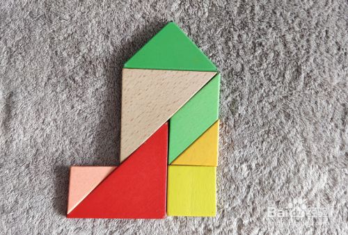 在红色三角形的左侧,放上橙色三角形挨着,如图。这样就拼好了。