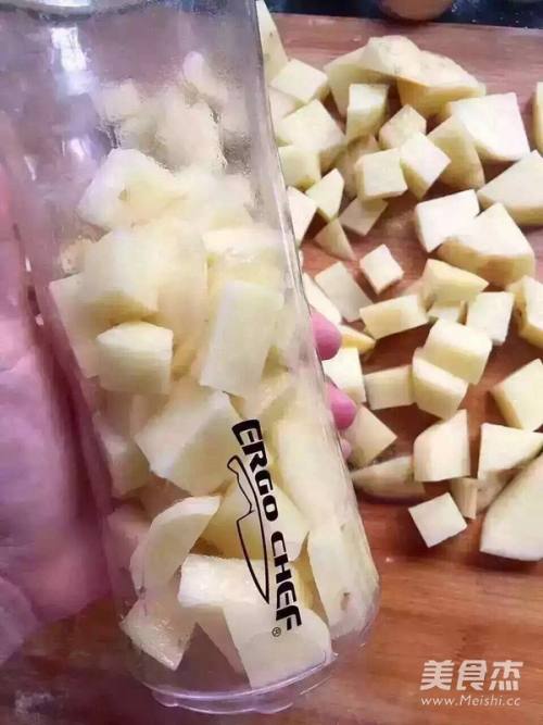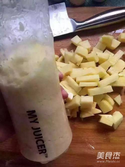 3打碎后加入适量的面粉搅拌均匀(马铃薯本身就有粉,所以不用加太多的面粉哦!)