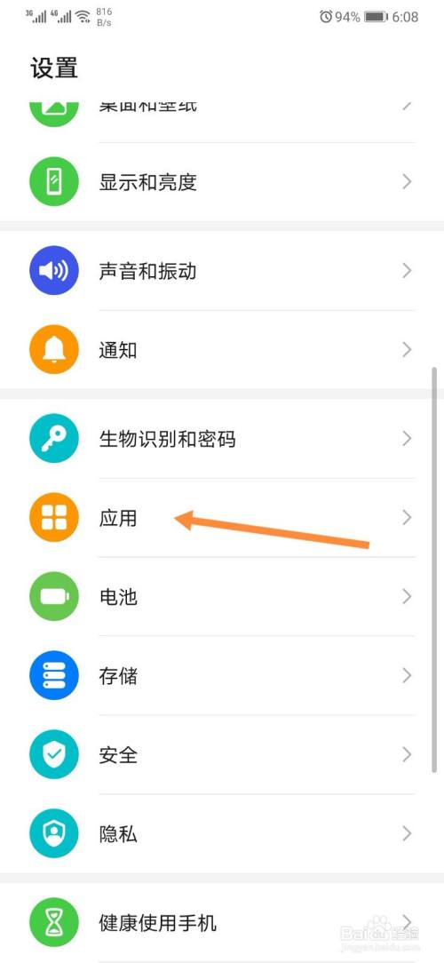 在设置力,打开【应用】。