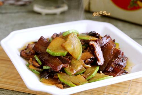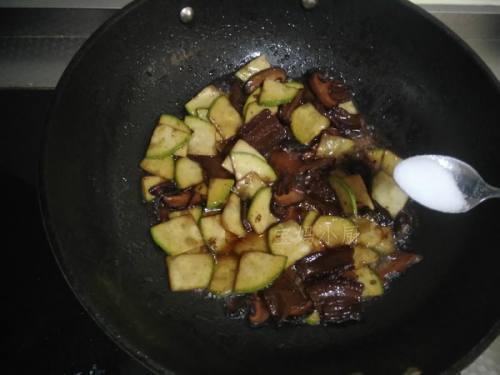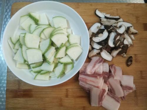 2西葫芦切厚片,香菇切片,猪肉切片(不去皮)