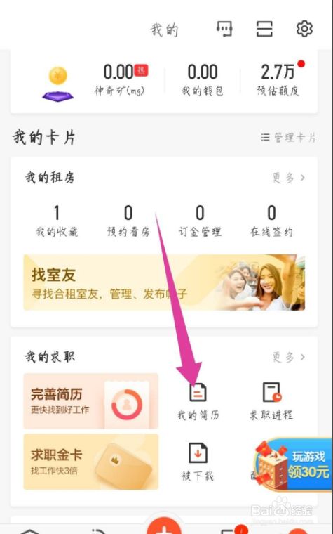 在打开的简历页面,左右滑动,选择要删除的简历。