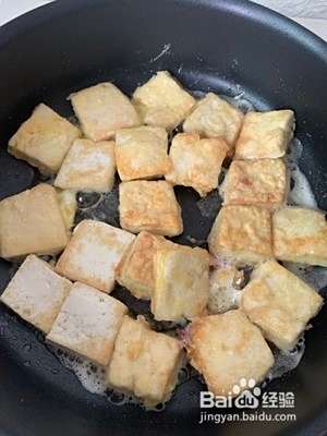 把豆腐放入平底锅,煎至两面金黄