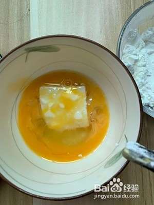 准备食材:豆腐切块,鸡蛋一个,淀粉适量
