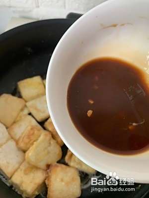 5. 把豆腐放入平底锅,煎至两面金黄
