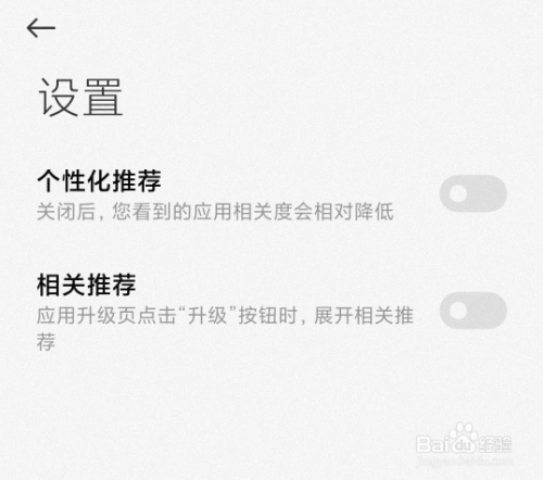 关闭红米手机应用商店的推荐功能。