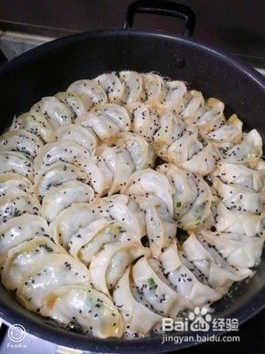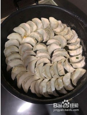 包好锅贴,冷锅刷油,把锅贴摆放整齐,开火,大火烧热加入适量清水盖上锅盖,大火一分钟,小火慢煎