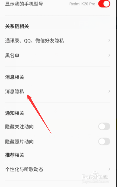 拉到下方找到“消息隐私”