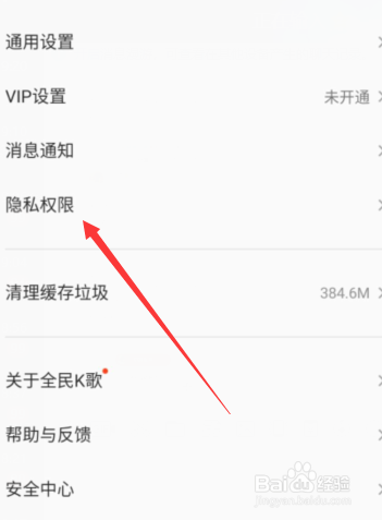 进入设置后,选中隐私权限