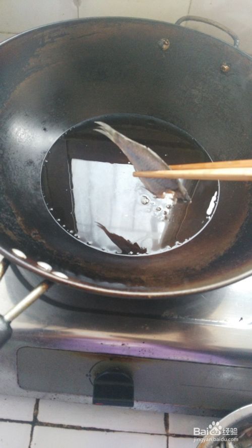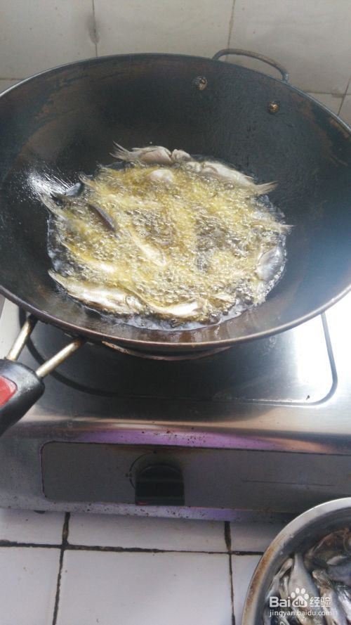 将油烧开后用筷子将小鱼一条条放入锅中;