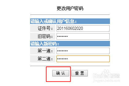 输入自己的学号,旧密码,新密码。