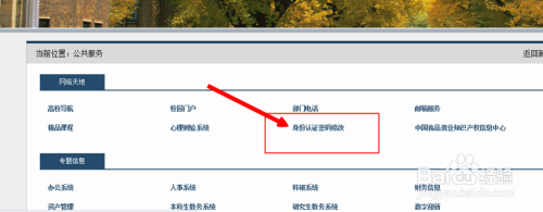 点击其中的“身份认证密码修改”,具体位置参考图示。