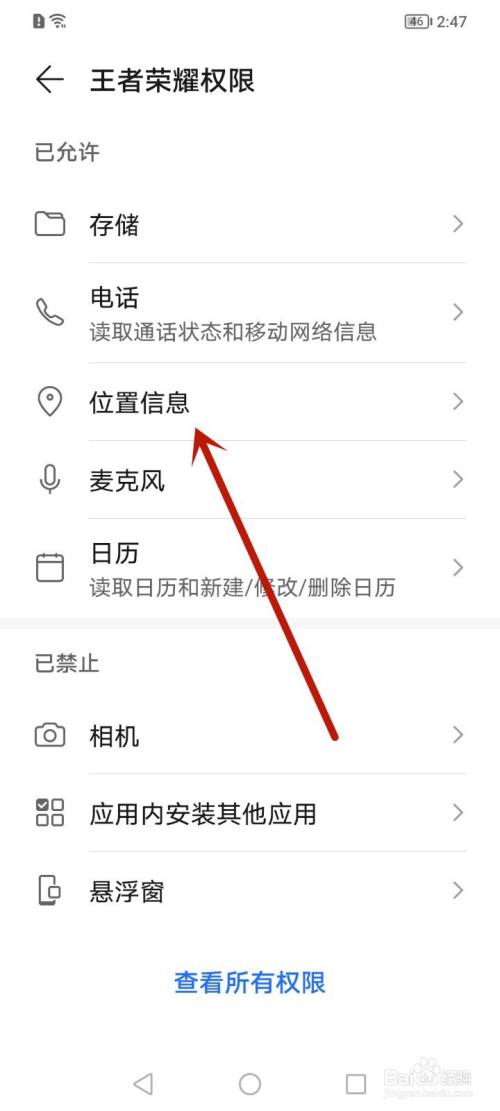 在权限这里,点击【位置信息】。