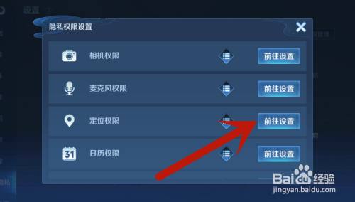 在弹出来的页面中,找到定位权限,点击【前往设置】。