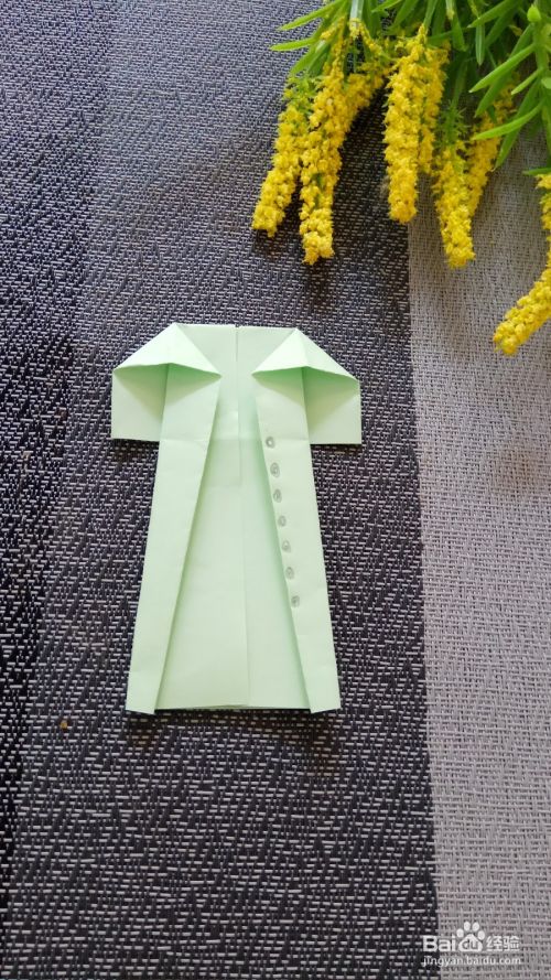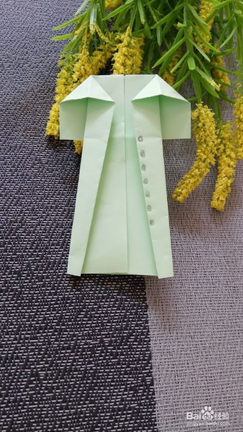 画上大衣的扣子,儿童折纸漂亮裙子就折好了。