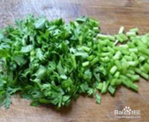 将茼蒿洗净捞出,放在案板上切碎,待用