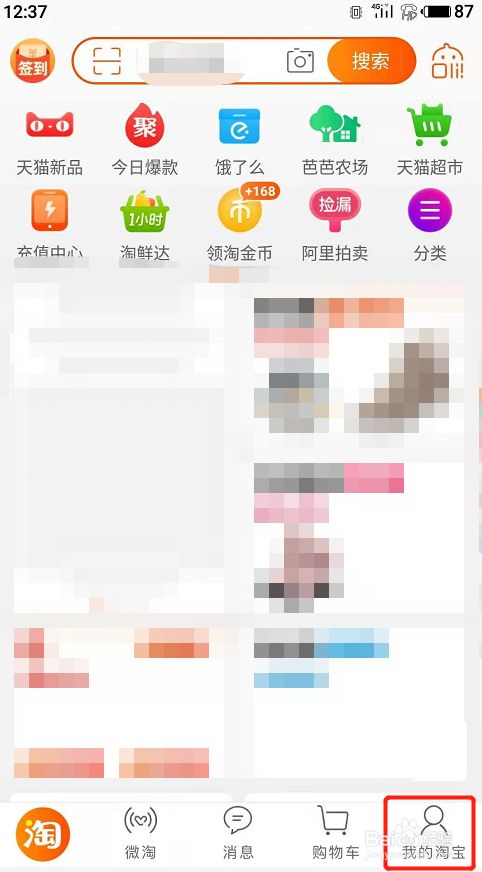 打开手机淘宝以后,我们点击底部导航菜单里面的【我的】按钮。