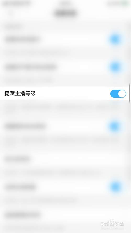 直播设置界面点击“隐藏主播等级”后面的圆点