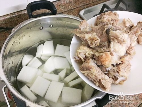 把灼过水的猪骨头放入