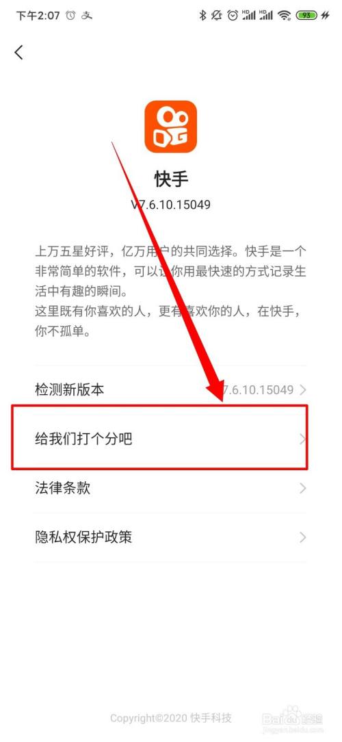 在此界面中的,点击“给我们打个分吧”选项,即可成功的给快手打分了,如下图所示
