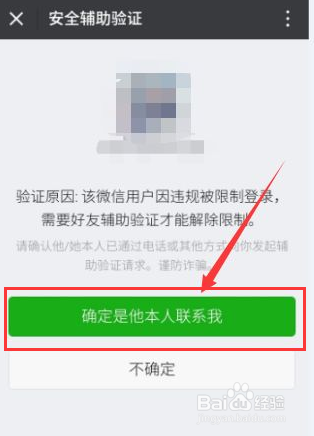 接下来,我们仍然用这部手机登录微信,这时,就会出现,好友申请腐竹验证的内容,我们直接点击打开,然后我们直接点击确定是他本人联系我;