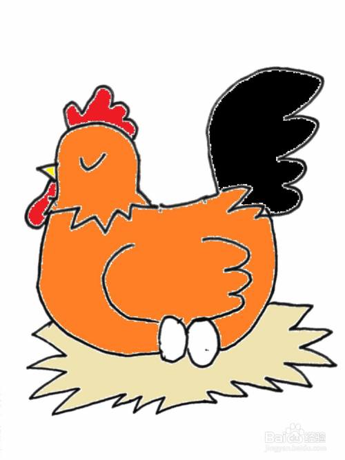 最后给母鸡涂上漂亮的颜色。简笔画母鸡就画好了。