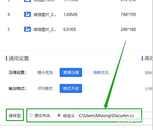 压缩好的图片可以保存在原文件夹中,也可以自定义保存的位置。