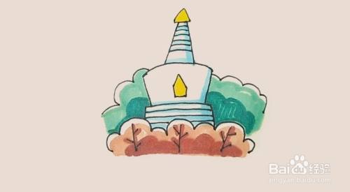 最后涂上好看的颜色,白塔就完成了