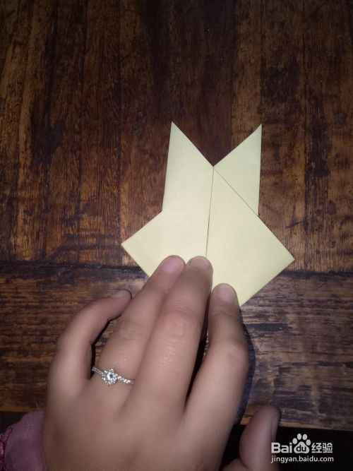 然后在卡纸中间的位置,把卡纸往上折。同理把另外一侧也进行翻折,这是耳朵。