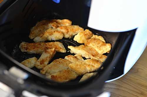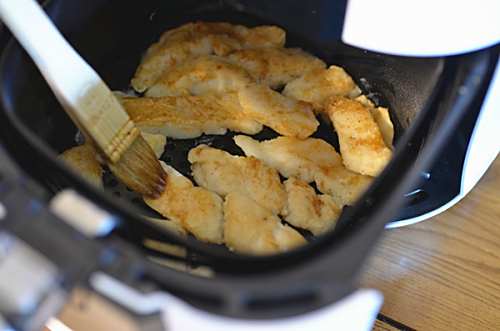 7炸锅提前10分钟预热200度,将鱼块放入炸篮中。