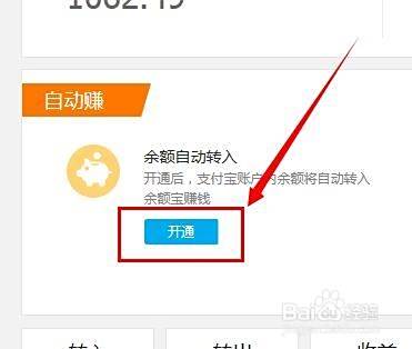 进入到余额宝的界面上找到余额自动转入,然后点击“开通”。