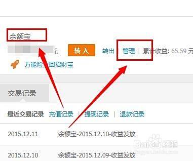 进入到自己的支付宝界面之后,在余额宝的一项中选择”管理“。