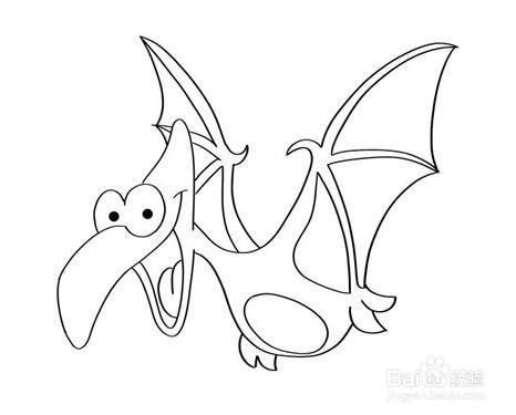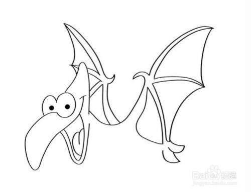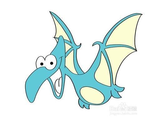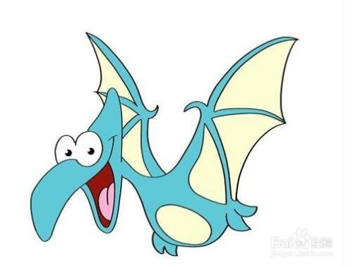 最后把嘴巴的内部涂成粉红色和深红色,这样翼龙就画好了。