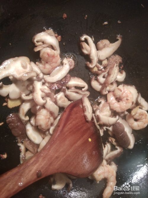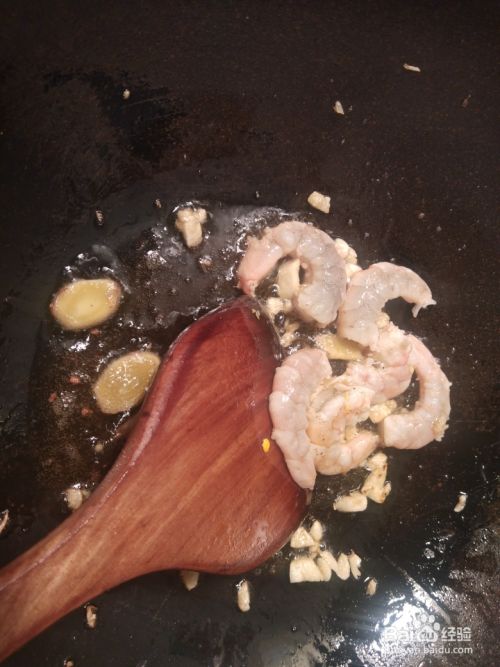 在火锅里,放入油和大蒜,炒姜片,炒虾仁