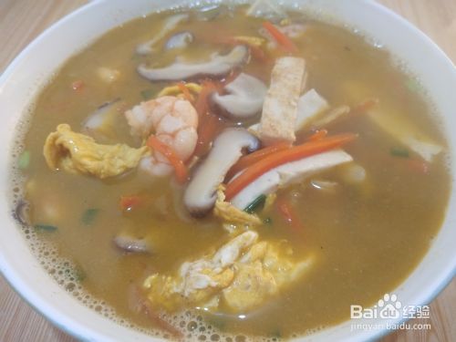 最后,撒上一些葱,你就可以吃这道菜了。无论是色菜还是食材的组合都非常棒。当你吃蘑菇,虾和豆腐的时候,香味就来了。最值得称赞的是汤。它超级美味,因为你没有在里面放任何额外的配料,所以它保留了原材料的味道。真的值得一试