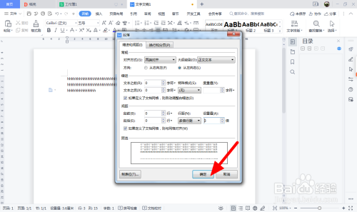 在段落页面,以3倍行距为例,设置行距为3。