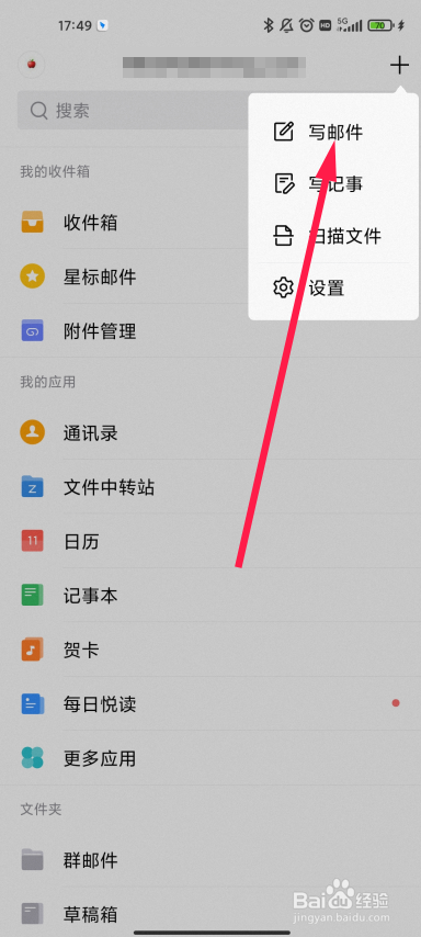 在软件首页点击左上角加号,在弹出的窗口中选择【写邮件】。