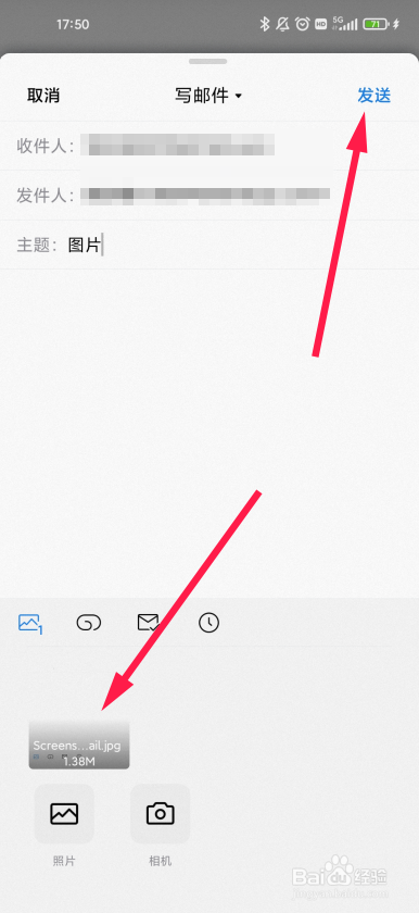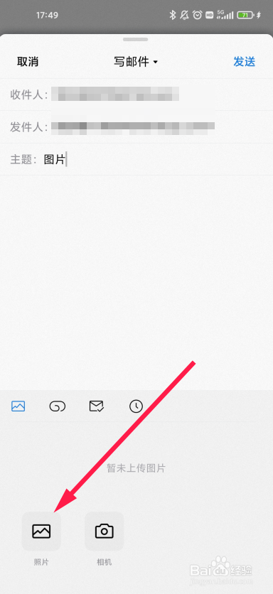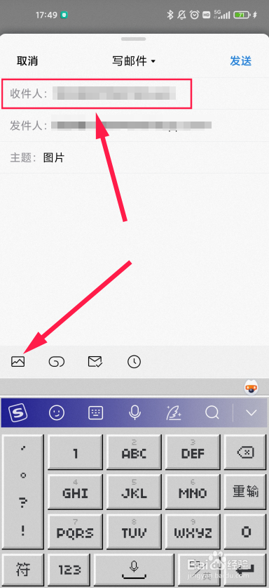在编辑界面输入收件人的邮箱号,点击图片按钮。