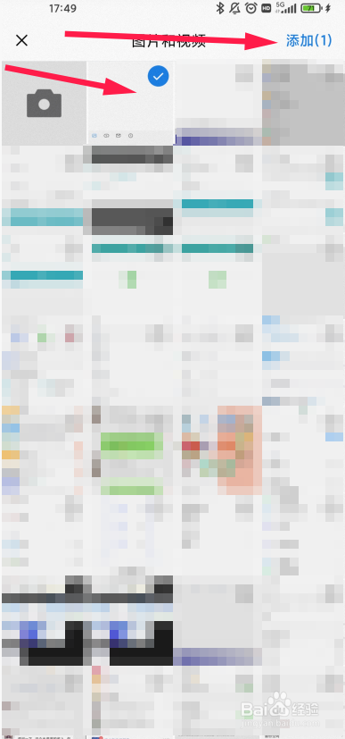 在弹出的窗口中点击【照片】,在相册中选择图片,点击【添加】。