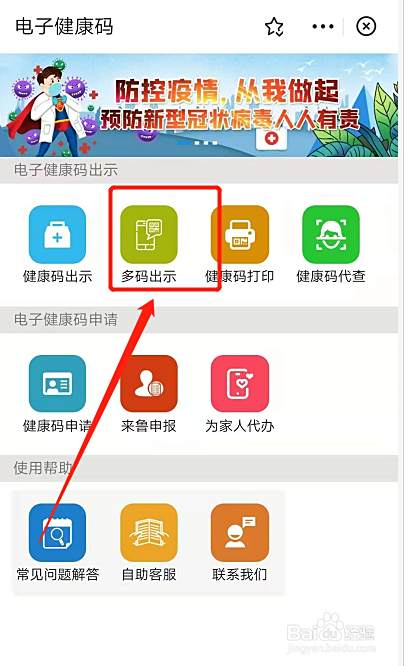 进入到电子健康码页面,点击多码出示。